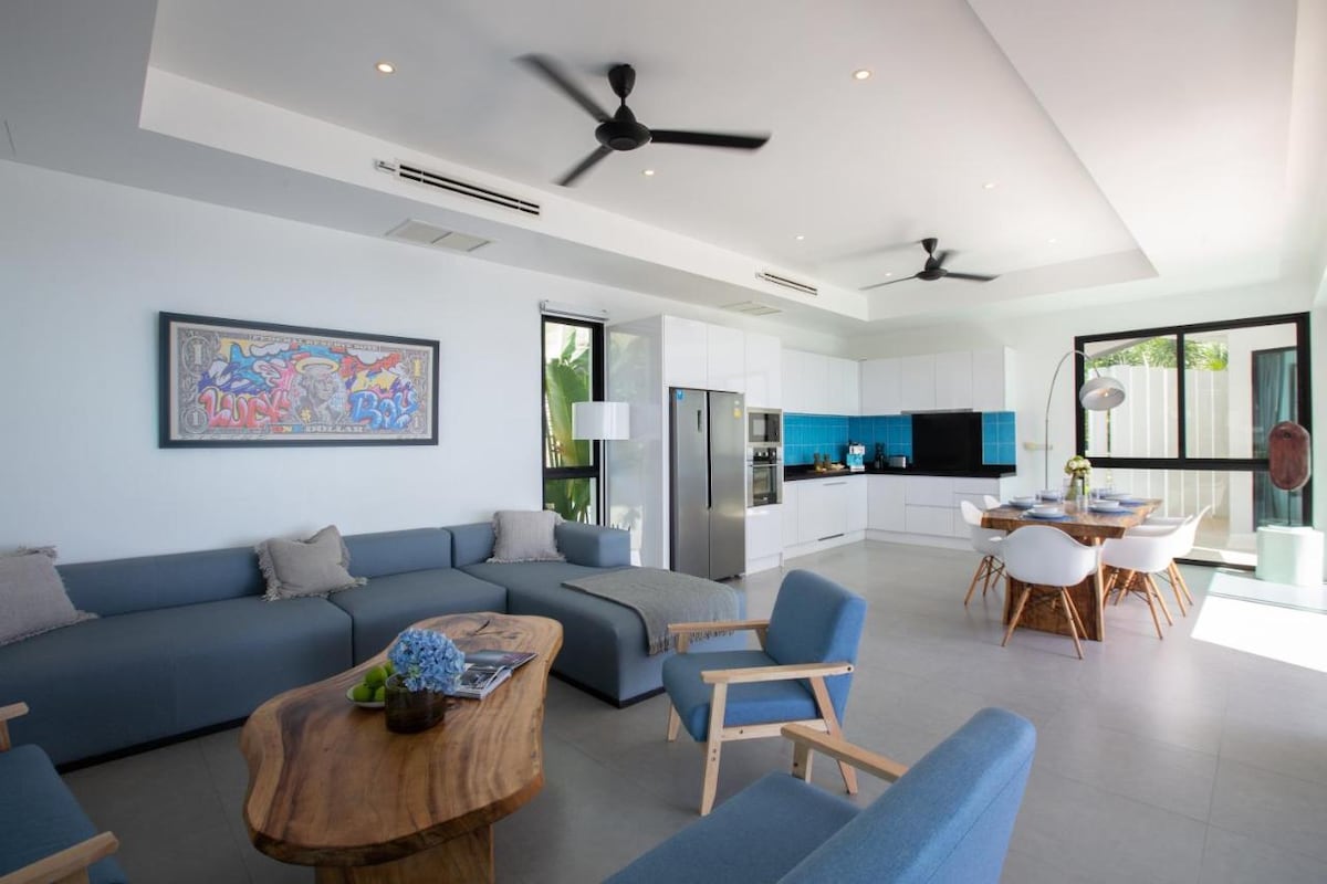 ¡Consulta todas las reseñas de 5 estrellas de Google para Sonata Villas! ¡Disfruta de una nueva joya arquitectónica! Te encantará: Ubicación ♥ privilegiada en Choeng Mon, a 8 minutos a pie del hotel Kimpton, la playa y los restaurantes Comedor/sala♥ de estar de planta abierta ♥ Cocina de mármol de lujo con isla de desayuno Sala ♥ de masajes junto a la piscina con 2 camas Techos de♥ 4 m de altura Terraza ♥ grande y piscina curva sin bordes ♥ Desayuno fresco diario incluido Traslados de ida y vuelta al aeropuerto y aparcamiento♥ gratuitos ♥ Wifi ultrarrápido ♥ Anfitrión Superhost en Airbnb