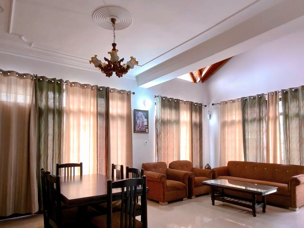 Insta kamakhyaat 1. Los precios económicos no significan una calidad inferior, tratamos de proporcionar lo mejor. 2. Casa enorme de 1600 pies cuadrados 2BHK, frente al sol, vista increíble, ubicada en Pine Oak Paradise, Shyamkhet, Bhowali 3. Proporcionamos las cosas necesarias como ropa de cama limpia, sábanas, toallas, champú, gel de ducha, jabón de manos, etc. 4. TV OLED Sony WIFI de 65 pulgadas y todo Ott 5. Cocina totalmente equipada (microondas, nevera, RO, calentadores de agua, etc.) 6. El salón consta de un sofá de 10 plazas, una cama individual, una mesa de comedor y sillas.