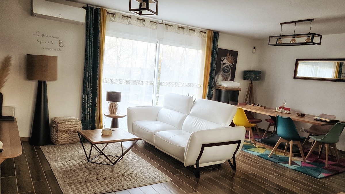 Disfrute de un alojamiento elegante y céntrico, todo se hace a pie en este pequeño pueblo medieval, a 10 minutos en coche del bosque de Troncais, y paseos relajantes. Comida casera, tablas de aperitivos, brunch dominical bajo petición🤗 ¡No lo dude! Solo tienes que dejar tus maletas en este apartamento de 70 m2, cocina equipada, salón, 1 dormitorio grande y un dormitorio pequeño para 2 niños con camas nido. Prestaciones de calidad, cama de 160 y colchón emma. A 20 minutos de la autopista A71.