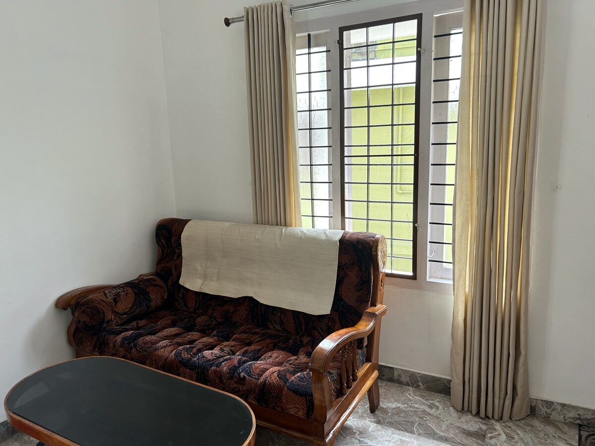 Tulsi Nest is a comfortable and well-maintained 2 BHK apartment, ideal for families, couples, and business travelers. The home features two air-conditioned bedrooms, a bright living area with a 50-inch TV, high-speed Wi-Fi, a functional kitchen, and clean bathrooms. Located in a peaceful residential area, it offers a calm, safe, and homely stay for short or long visits.