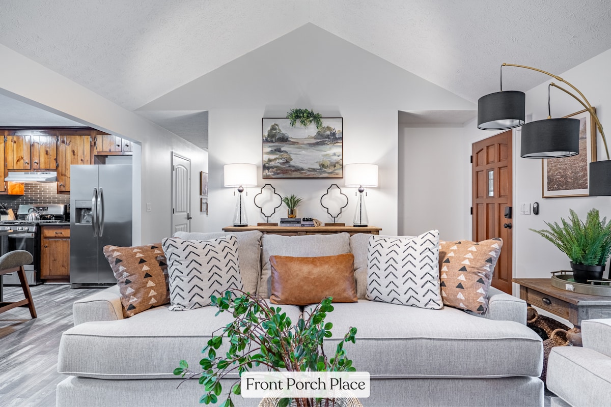Nuestra casa tiene capacidad para siete personas y da la bienvenida a mascotas con un patio trasero vallado. Disfruta de flores frescas, una cocina ligeramente surtida, wifi, televisores inteligentes, toallas y sábanas frescas, una cafetera, Keurig, una cuna portátil, un moisés y una trona para los más pequeños. Relájate en amplias terrazas con una parrilla, perfecta para reuniones al aire libre. Este tranquilo refugio es ideal para bodas, torneos deportivos o escapadas familiares, que ofrece todo lo que necesitas para una estancia inolvidable. Granero Little Wildflower de 1,9 m 12 m de Historic Rock Wedding
