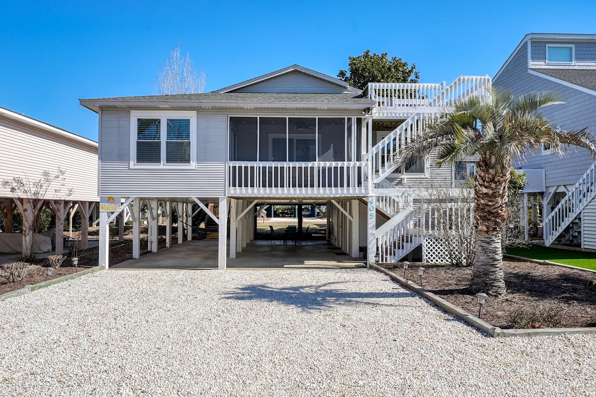 Diversión familiar para todas las edades, ubicada cerca de la playa y la vía fluvial intercostal. ¡Ubicación céntrica segura con colorida diversión artística! Nuevo pinball 2024. Lujosa decoración moderna con cómodas habitaciones King y Queen. A poca distancia en coche de la playa favorita de la familia, Cherry Grove Beach. Sistemas de sonido e iluminación de alta tecnología, Dolby Atmos, televisores LG OLED, sistema de juegos en streaming y PS5, sala de juegos, futbolín y nuevas máquinas de pinball. Cargador de coche Tesla. Cocina gourmet con todas las funciones, parrilla de carbón Weber y fogata. ¡Listo para jugar!