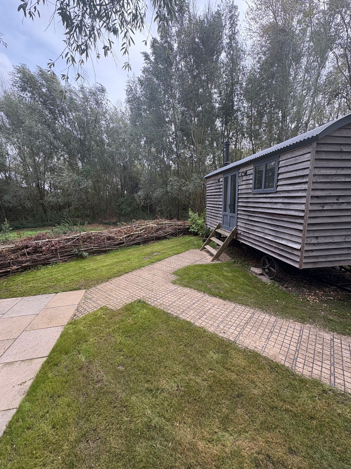 The Shepherds Hut se encuentra en jardines privados recientemente ajardinados junto al río Weaver en la campiña de Cheshire. Ubicada en una isla privada con otras 4 casas. Se llega por una carretera privada y un puente. Situado en Dutton Locks, junto al espectacular viaducto de Dutton, el puente de caballos de Dutton y las esclusas de Dutton, todas hazañas de la ingeniería del siglo XIX. Es un lugar pintoresco y tranquilo, lleno de historia. Excelente para actividades como pesca, observación de aves, senderismo, ciclismo, kayak y relajación.