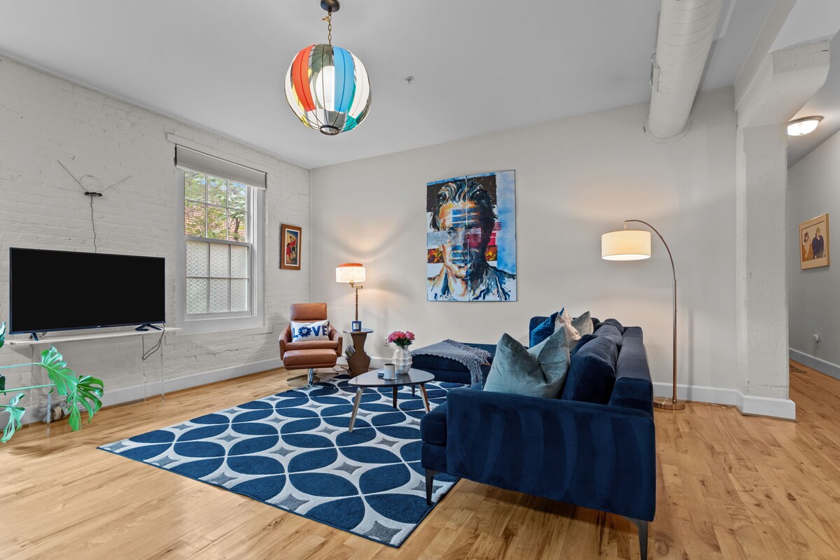 Solo adultos. Amplio apartamento de 2 dormitorios y 2 baños. El apartamento cuenta con un dormitorio en cada extremo de la unidad, planta abierta y techos altos. Está cerca de negocios del centro de la ciudad, hospitales locales, universidades, restaurantes, rutas de senderismo, atracciones turísticas, salas de conciertos y el río James, todo en un radio de 5 millas. El barrio es muy transitable y el apartamento está amueblado con muebles modernos de mediados de siglo que proporcionan estilo y comodidad. Está equipado con todas las comodidades imaginables.