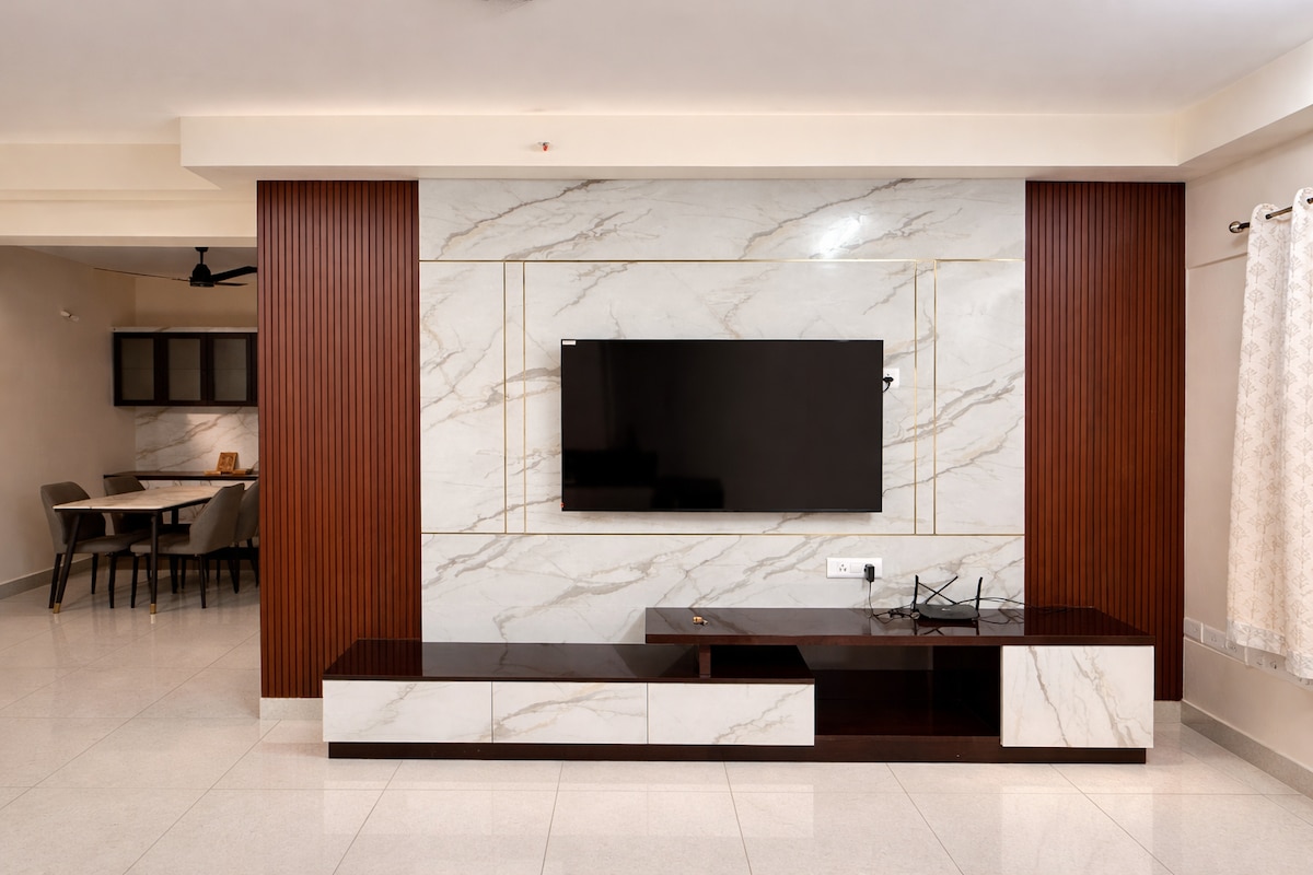 A serene stay for Families, couples with spacious living, a calming color palette, and thoughtful design. Enjoy morning coffee on the balcony and quiet nights in a peaceful, Close to everything you need.