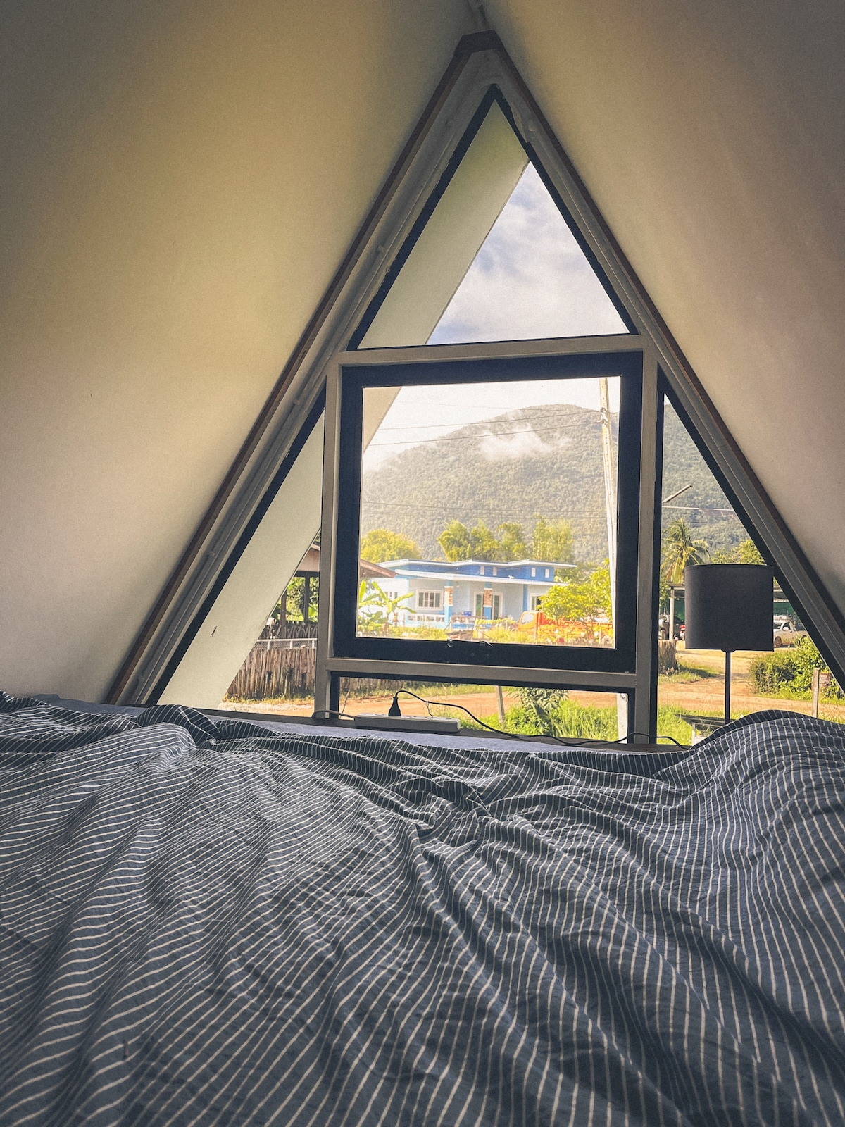 Elevada en lo alto de la tierra, cabaña de madera triangular compacta en un huerto. Se ve simple desde el exterior, pero lleno de la cantidad correcta de magia en el interior. Cuando se abra la puerta, encontrarás una tranquila zona de entresuelo. Es un balcón abierto para recibir sonidos del bosque y la montaña “Doi Luang” Mama, Heart of ChiangDao Caregiver. Haz que sea un espacio privado escondido en el interior. Cuando llegó la noche, salí a un lado,hay una cocina abierta de tamaño decente. Vamos a cocinar ysazonemos nuestro tiempo juntos.