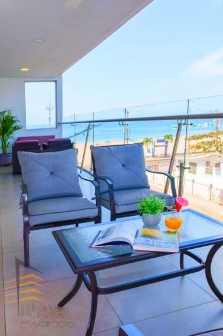 5 rooms beach front confortable department, with nice decor and everything you need to rest and enjoy a great beach vacation. Located at Chichipe closed to many restaurants and to the Yacht Club of Salinas. Chichipe is a very nice beach, suitable for little children and with many nautical attractions. The naval base is a few meter away where you can take walks or bike rides with beautiful ocean views and tourist attractions. You can also walk to several yummy seafood restaurants.