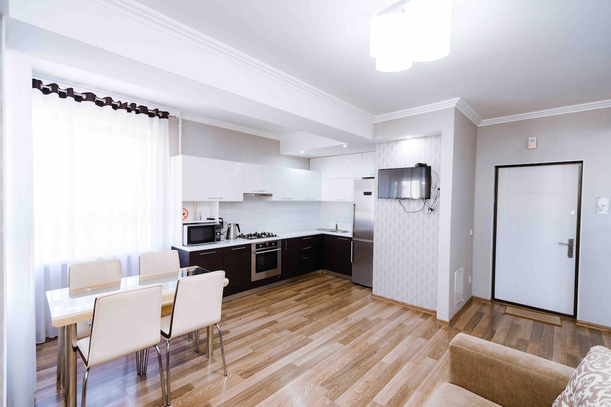 Orange Nest is a modern-designed apartment, created for enjoyable and comfortable stays in Chișinău. ✔ 2 separate bedrooms with large beds and comfortable mattresses ✔ Heated floors in the kitchen, living room, and bathroom ✔ Automatic heating – always the perfect temperature ✔ Air conditioning (2 units) ✔ Private underground parking – safe and secure for your car Arena Chișinău is very close — ideal for guests attending concerts or events.