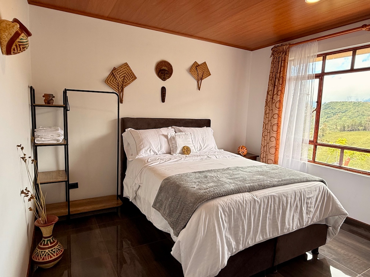 Hermosa cabaña hecha con adobe, madera y piedra, según la costumbre tradicional boyacense. Tiene la vista más espectacular del Valle de Tenza. Un lugar tranquilo y retirado para descansar, inspirar o crear en medio del bosque. Para llegar a la cabaña hay que caminar por un camino escarpado de unos 250 metros (entre 10 a 15 minutos) desde el estacionamiento. La cabaña cuenta con WiFi. Por favor, llevar zapatos para caminar por barro.