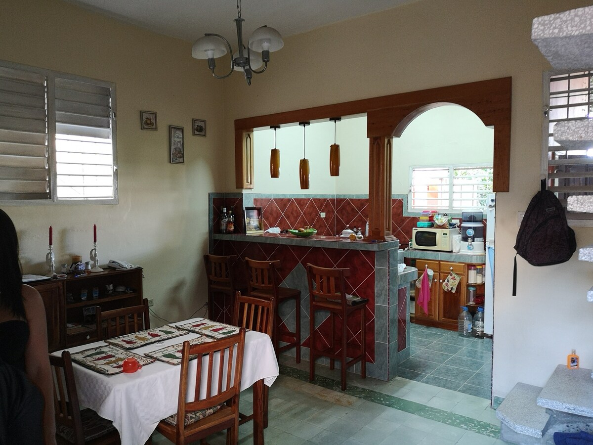 Das renovierte Haus im idyllischen Viertel La Juanita liegt zu Fuss 3 Minuten zum Viazul Bahnhof und 12 Minuten bis zum Meer und Stadtzentrum. Die casa ist sehr geraumig mit offenem Patio mit Hollywoodschaukel im Eingangsbereich, zwei Aufenthaltsraumen mit Wohnkueche und Garten im Hinterhof. Von Mai bis Juli haben wir eigene Mangos. Wer Zeit hat kann mit Opa Paco Kaffee rösten und dann verkosten.