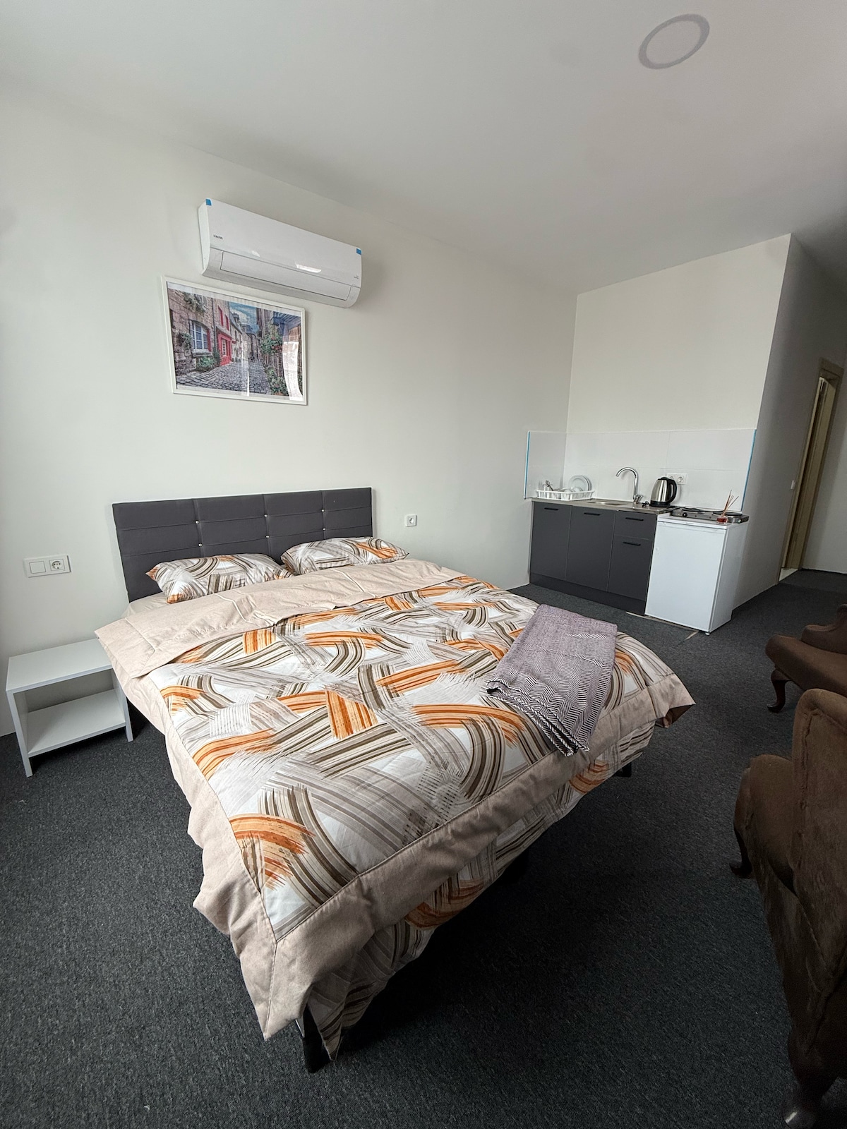 Sentirás la comodidad en cada detalle en nuestro apartamento 1+0 con un cómodo espacio de trabajo, cocina pequeña, TV inteligente e internet de alta velocidad. Ya sea por negocios o por placer... ¡Siéntete como en casa en todos tus viajes cortos o duraderos! Gracias al sistema de llegada autónoma, puedes hacer el check-in en cualquier momento, comenzar tu estancia sin esperar y sin esfuerzo. Te enviamos toda la información sobre la llegada después de reservar. La limpieza, la seguridad y la comodidad son nuestra prioridad.