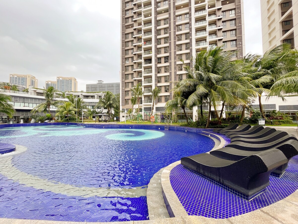 Bersantailah bersama seluruh keluarga di tempat menginap yang tenang ini. Apartemen ini menghadap pintu jalan masuk dan kolam renang, memiliki 2 kamar di dalamnya. Ruangan bersih seperti di rumah sendiri, di fasilitasi dengan berbagai macam peralatan rumah yang lengkap serta fasilitas kolam renang, dan tempat kebugaran. Tempat yang menyenangkan terletak di tengah kota yang bersampingan dengan mall Aeon terbesar dan terlengkap di BSD, dekat dengan Ice BSD dan tempat permainan anak