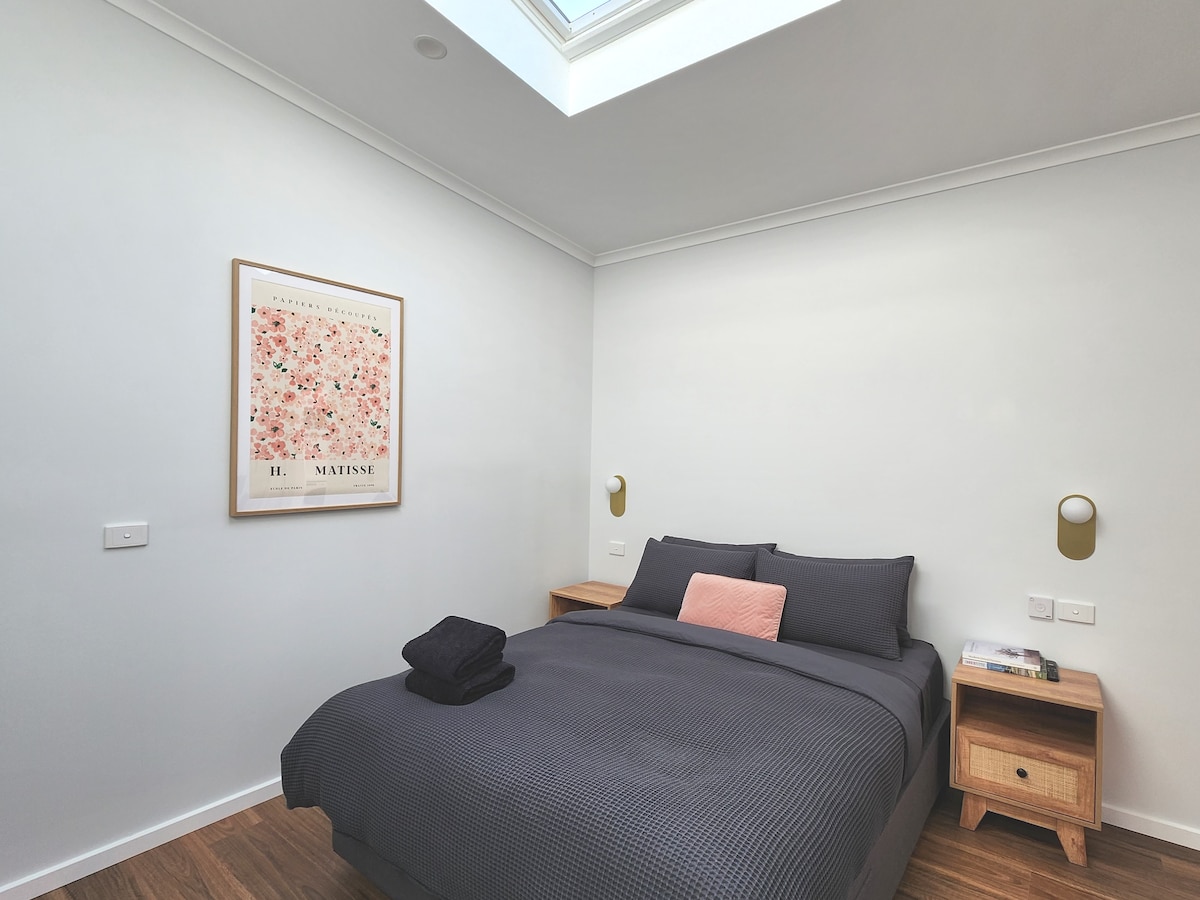¡Te damos la bienvenida a Albury y a sus impresionantes alrededores! Relájate y desconecta en tu propia casa de huéspedes. A solo 8 minutos a pie por una calle verde y frondosa del centro de negocios de Albury y del hospital base de Albury. Completa con una decoración elegante, terraza al aire libre y una hermosa luz del cielo sobre tu cama. ¿Alguien dijo hotel de mil millones de estrellas? (No te preocupes, nuestra luz del cielo se completa con una persiana de bloqueo remoto). Nuestra casa de huéspedes se encuentra en la parte trasera de nuestra propiedad y está recién reformada. Estamos deseando recibirte.