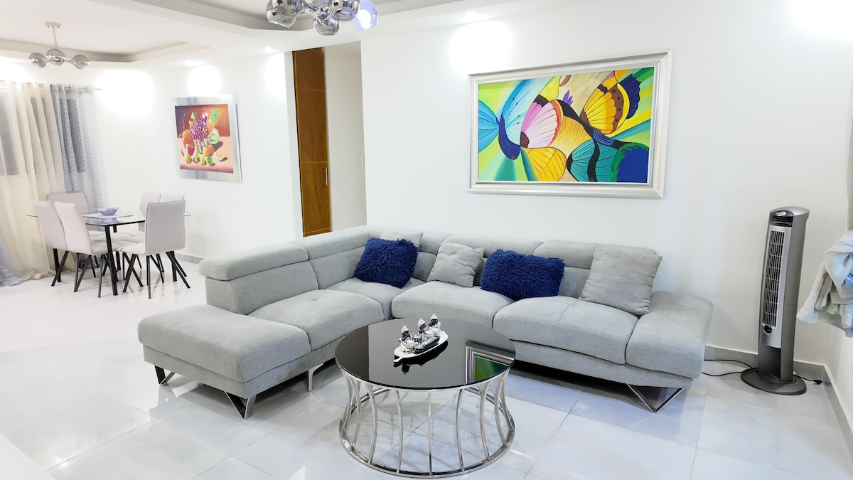 Diviértete con toda la familia en este alojamiento con estilo. Con la privacidad y los servicios necesarios para tener momentos inolvidables, tiene una cocina completa, baño completo en cada habitación, tenemos aire acondicionado en cada habitación siempre que haya electricidad, hay ventiladores en la pared y ventilador de techo en la sala de estar. Entra con un código de acceso # ¡Está en una cuarta planta sin ascensor! Pero ofrecemos ayuda con el equipaje siempre y cuando me avises con antelación.