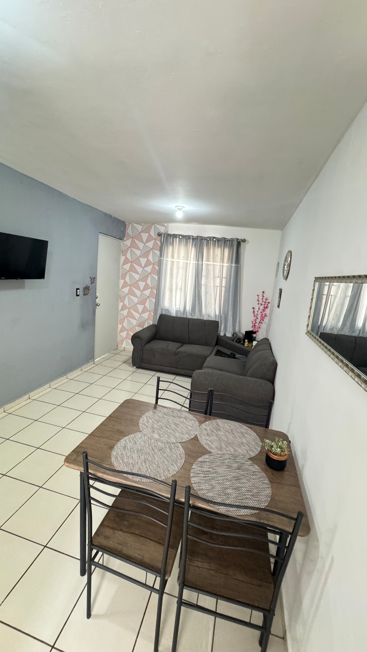Nuevo departamento minimalista con todo lo que un viajero o familia necesita para pasar una cómoda noche, nos encontramos en una buena ubicación ya que alado de nosotros se encuentra una parada de autobús, así como enfrente del departamento se encuentra una tienda Oxxo, también a 3 minutos en coche se encuentra Soriana y nos ubicamos a 7 minutos en coche de los mejores restaurantes de la ciudad.