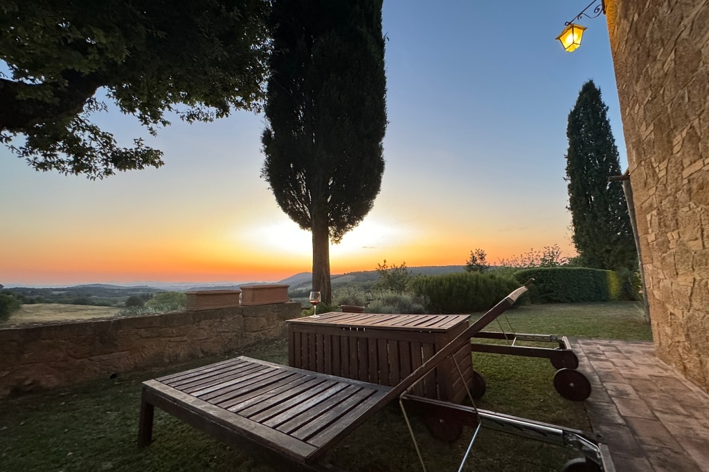 La casa goza de una vista rara y encantadora del Val d'Orcia y Monte Amiata, lo que garantiza la máxima privacidad. Los interiores reflejan el encanto del estilo toscano, con muebles antiguos y acabados realizados por artesanos locales. Está equipada con un dormitorio doble, una gran sala de estar con una gran mesa, una pequeña cocina totalmente equipada y un sofá cama doble frente a la chimenea, en la sala de estar. En el exterior, el patio te permitirá comer con los colores de la puesta de sol como telón de fondo.