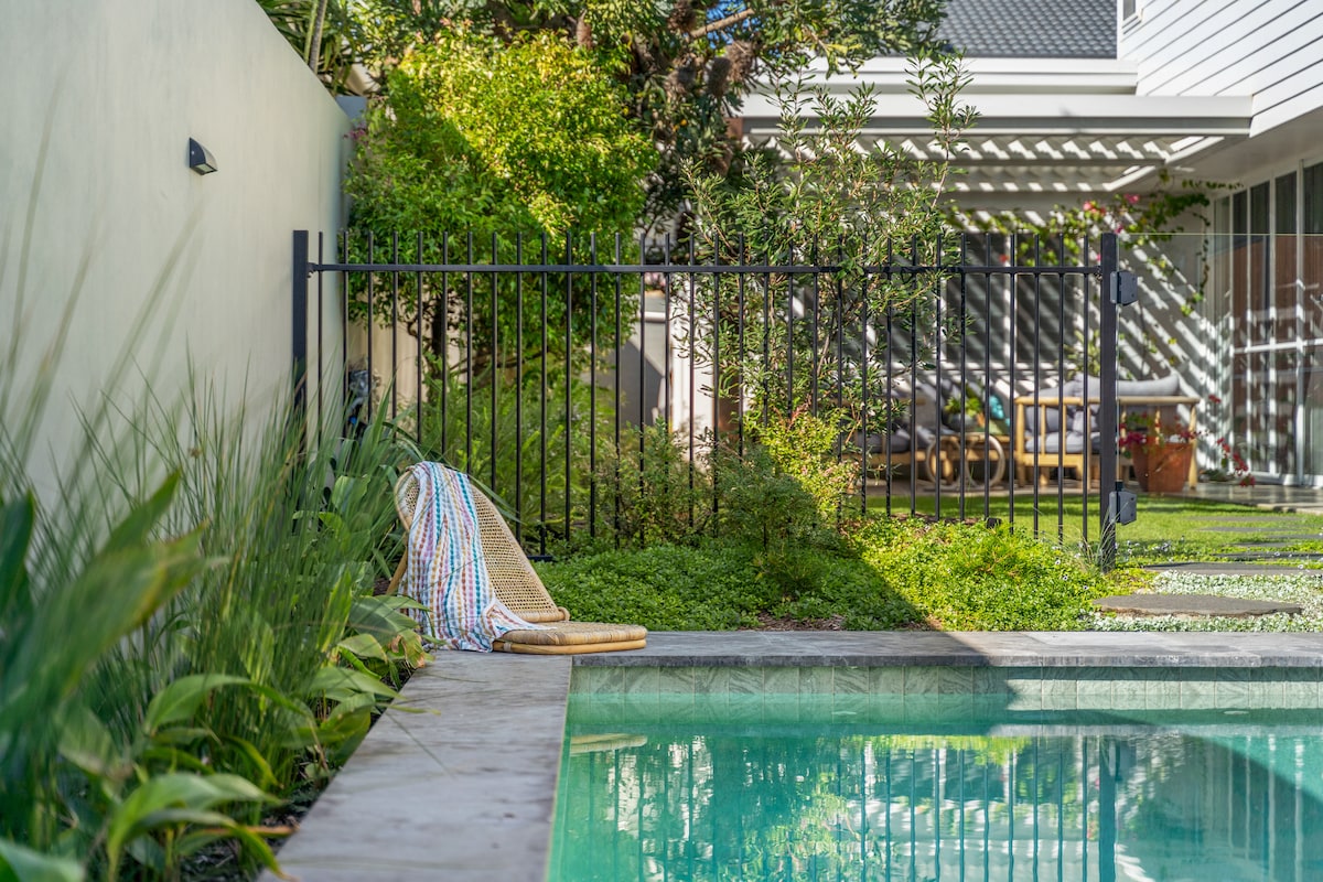 Mariners Rest is a relaxed, resort-style Yamba escape designed for easy living. Enjoy a heated pool, outdoor spa, alfresco dining, indoor fireplace and outdoor fire pit, perfect year-round. The open-plan kitchen flows to the pool, ideal for shared meals. Four bedrooms and 2.5 bathrooms suit families or friends. Pet friendly with a fully fenced yard, herb garden, and a canoe and stand-up paddleboard that can be launched just minutes away near the end of the street.