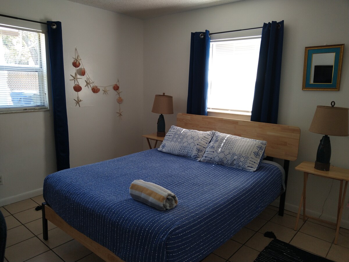 Moderna suite de 1 dormitorio, tranquila y acogedora. Entrada privada. Cocina americana (sin cocina), nevera/microondas/café/tostadora/lavabo/platos/utensilios. Parrilla de gas. Baño espacioso, cama matrimonial. Excelente ubicación cerca de tiendas/restaurantes, a 4 millas de Gulf Blvd encontrarás todas nuestras hermosas playas. Televisión por cable, Wi-Fi, 1 lugar de estacionamiento privado (con capacidad para 2 o vehículo recreativo con aviso), patio trasero privado, acceso a lavadora/secadora para estadías de 4 noches o más. No se admiten mascotas ni niños menores de 8 años.