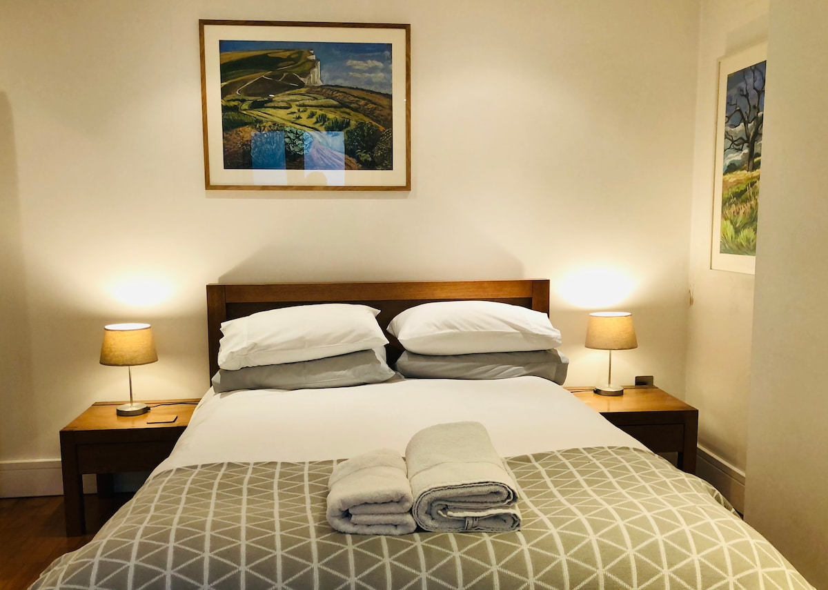 Relájate en este espacioso y tranquilo apartamento con jardín dentro de nuestra casa victoriana. Entrada privada independiente con cocina / comedor totalmente equipada que conduce a un bonito patio con jardín. El enorme dormitorio es el lugar perfecto para una noche de sueño tranquilo y tiene una cómoda cama tamaño king. El baño tiene una ducha sobre la bañera, el lavabo y la lavadora. Baño separado. El salón soleado tiene sillas, TV, mesas de café y un pequeño sofá cama. Bajo petición, se puede añadir una cama individual más larga para adultos para crear un segundo dormitorio.