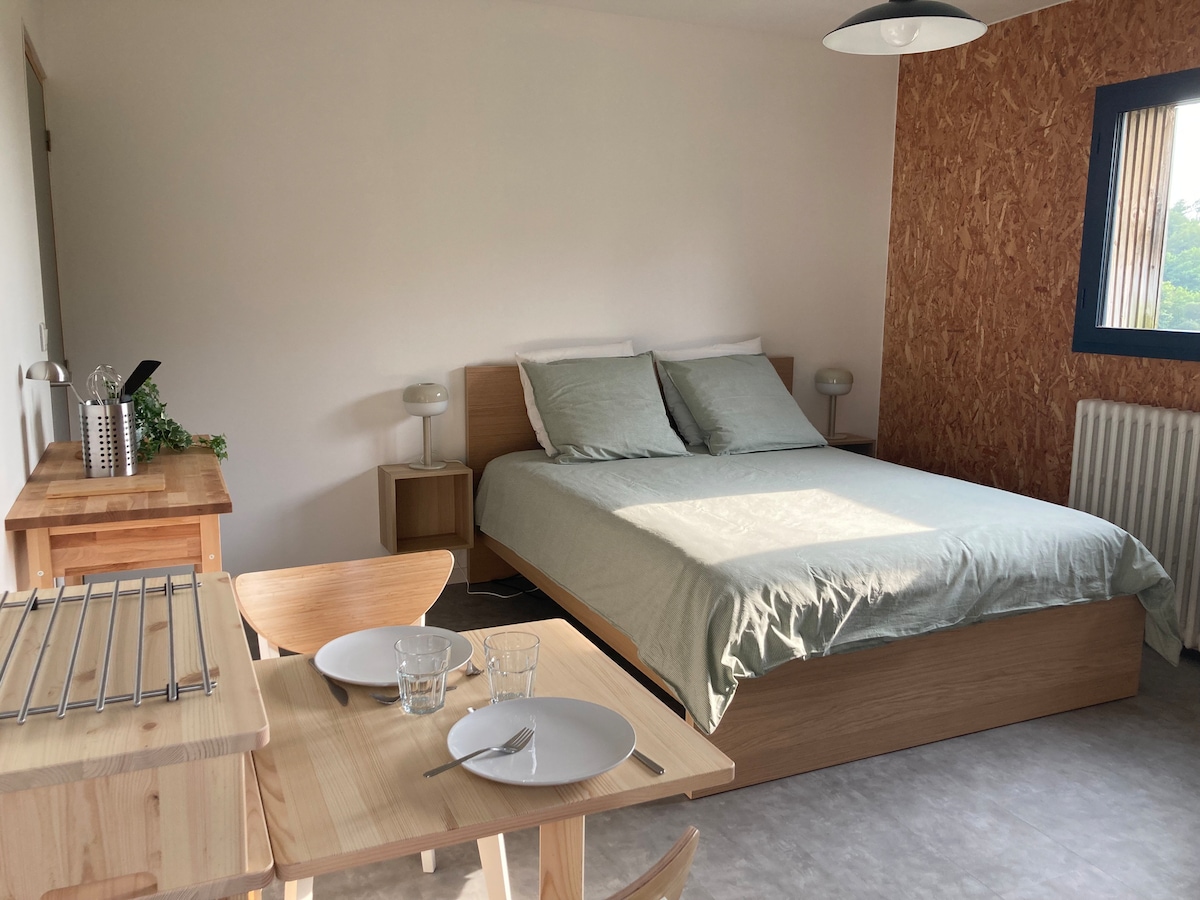 Disfrute de un elegante estudio privado, a pocos minutos a pie del centro de Clisson y sus tiendas. Las dos entradas del estudio (lado de la calle y del lado del patio) son independientes de la casa principal. Estacionamiento gratuito y fácil en la calle. El sitio del Hellfest y el Hellcity están a poca distancia. Llegadas y salidas autónomas y flexibles en la medida de lo posible.