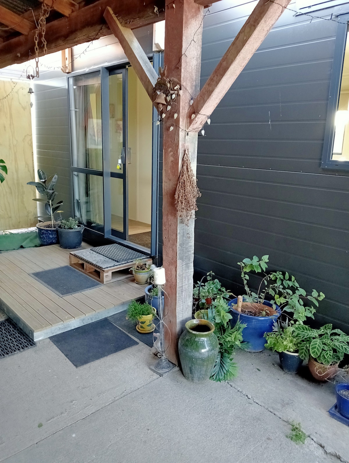 Our place is a unique architectural designed passive solar, straw bale home with recycled native wood and natural clay finish. Enjoy the warmth, peaceful feel and views of the beautiful Maraetotara valley and relax in the natural spring water hot tub. The 30 sqm studio is located within the main house, has a separate entrance, private deck and parking with EV charger. Kitchen with toaster, microwave, fridge, induction cooktop and electric BBQ on deck. Breakfast pack for the first day.