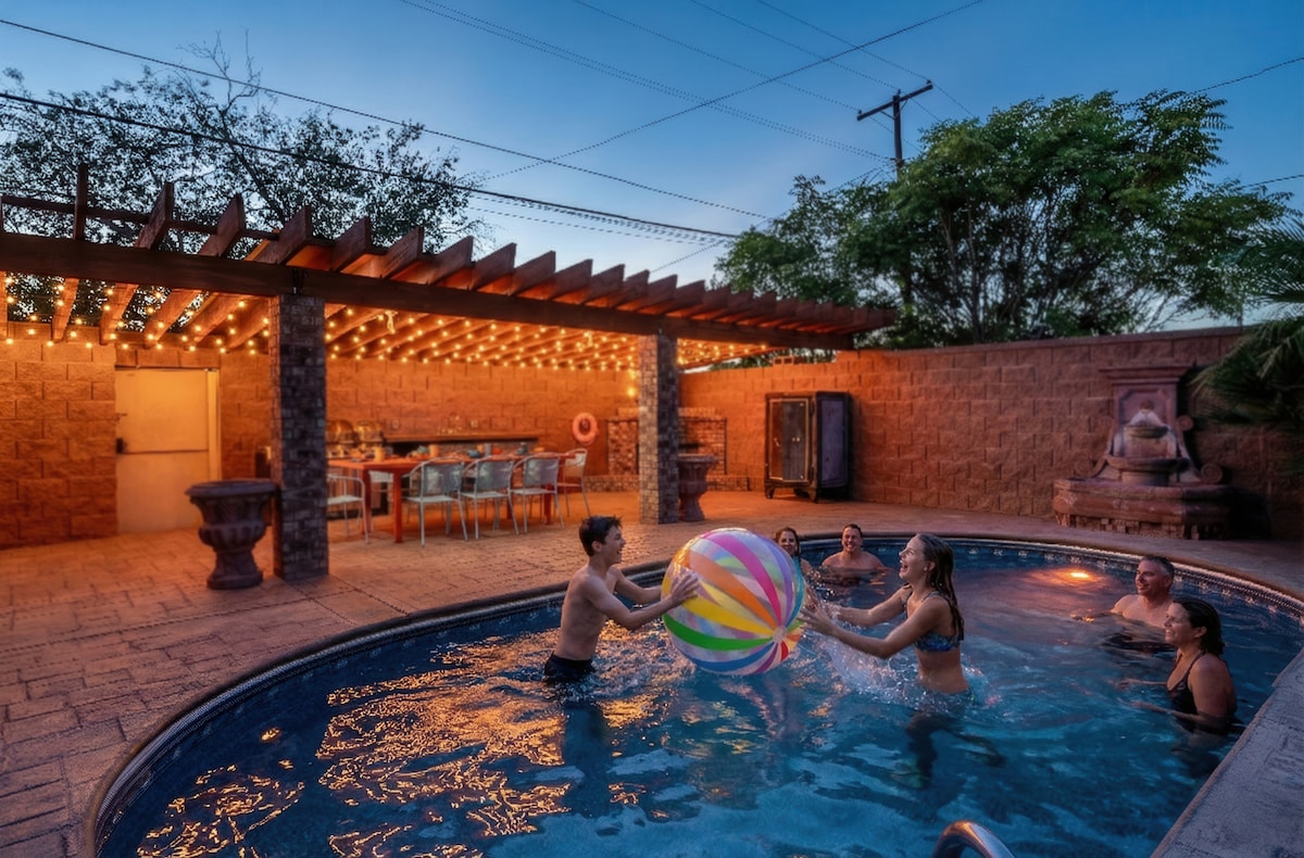 Oasis en el desierto cerca de White Sands con piscina y sala de juegos