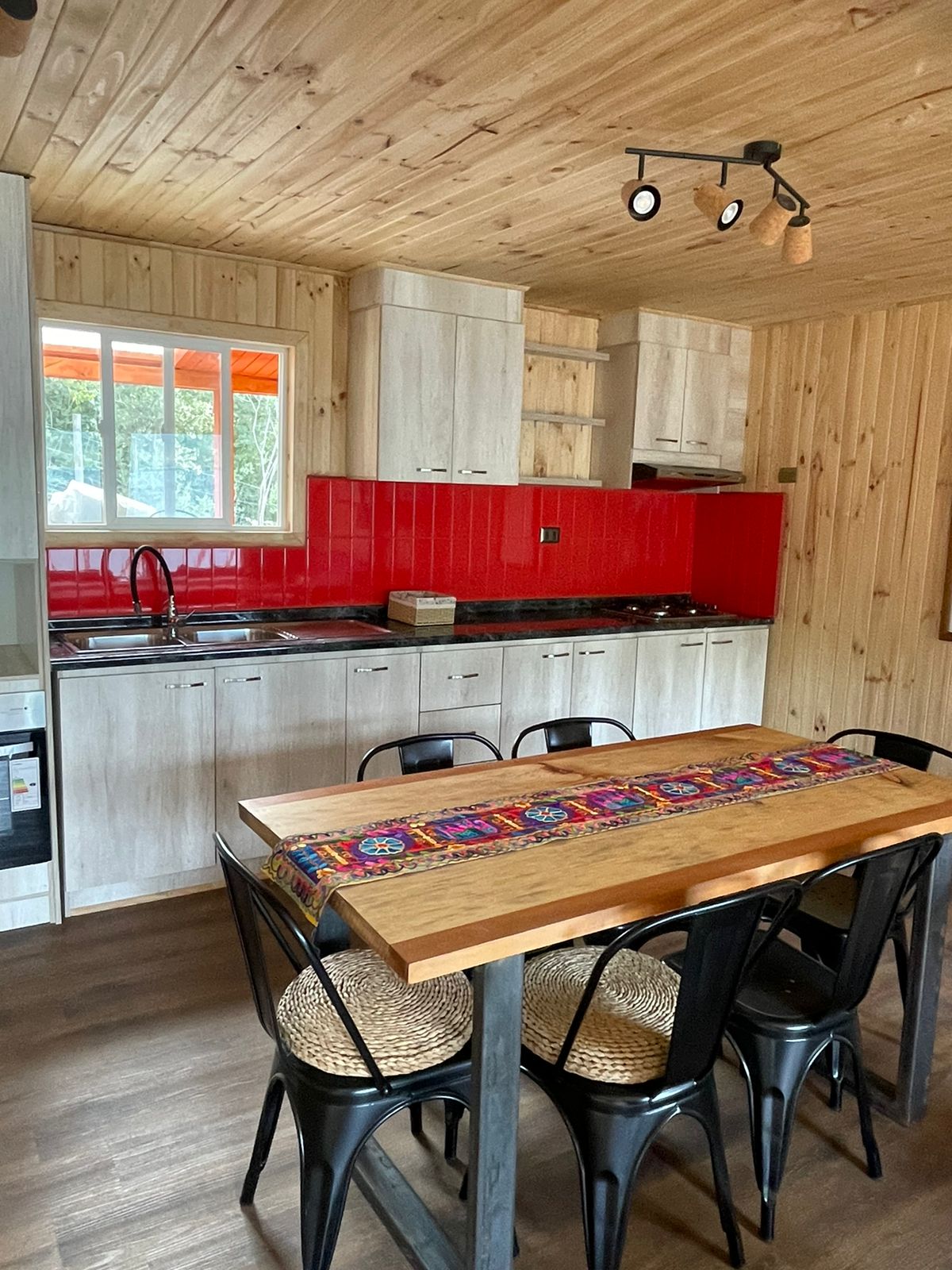 Es una cabaña rústica tipo Tiny house(cabaña pequeña) sustentable para 2 personas. MUY IMPORTANTE :No tiene tv, cuenta con un pequeño frigobar, secador de pelos, cuenta con cocina a leña y aire acondicionado frío calor. Cuenta con una tina caliente tiene costo extra de $40.000 pesos. Rodeada de árboles nativos fué construida tratando de mantener el equilibrio con el alrededor. Hay un fogón al aire libre. A 1 kilómetro y medio está el pueblo de Río Puelo y a 3 kilómetros de las Termas del Sol