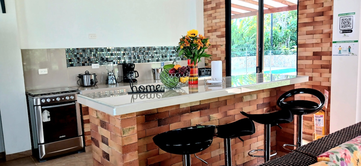 Casa inmersa en el corazón del eje cafetero. Apta para trabajo en casa. Internet de alta velocidad. Lugar calmado. Muy cerca de: parque de los Arrieros 5 minutos. Panaca 15 minutos Parque del Cafe 15 minutos. Alojamiento completo. Prohibido hacer fiestas o ruido excesivo. El lugar es para descanso. Tiene piscina para niños. Te va a encantar mi lugar debido a que sienten la comodidad y descanso rodeado de la Naturaleza y sus sonidos. con excelente WiFi para ver tus series favoritas
