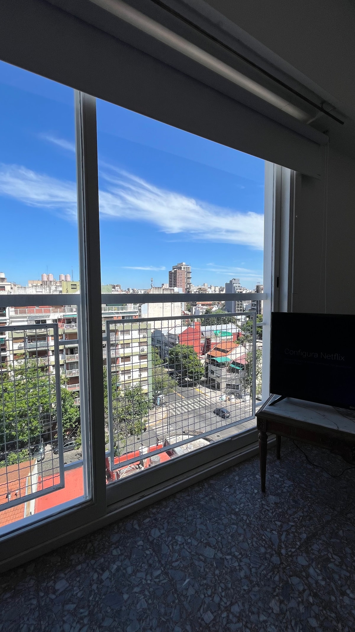 Very nice apartment, 14th floor, with open view and lots of sun. Tower building with 24 hour security Excellent location: 8 block away from subway line D and main Av. Cabildo which is full of public buses transportation, 2 blocks away from Belgrano R Train Station. Perfectly located to explore the city. 1 Bedroom with double bed and AC, Living Room with dining area and AC, Bathroom and full equipped Kitchen.
