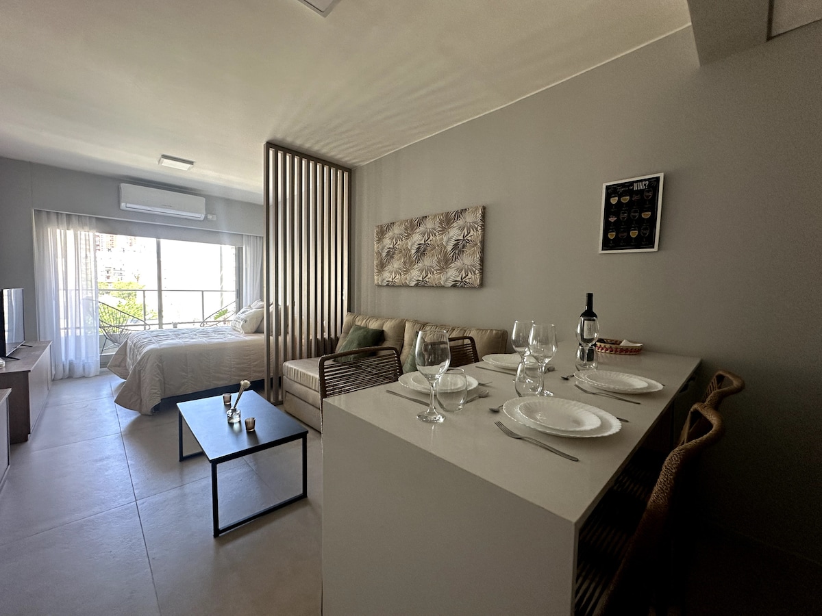 Un espacio que enamora. Viví en un estudio único en el corazón de Palermo Hollywood. Amanecé con luz natural, y disfruta del gran balcón de 7 metros rodeado de verde. Deco minimalista, cómoda cama con colchón nuevo, sábanas suaves y toallas de primera calidad y cocina equipada. WiFi alta velocidad para videoconferencias, Smart TV 45". Check-in autónomo, adaptador eléctrico, juegos y detalles pensados para tu confort. Además: Recomendaciones de los imperdibles!