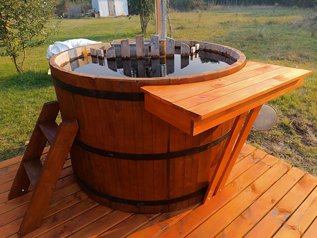 Relájate en esta escapada única y tranquila.Inmersa dentro del bosque nativo, como en un cuento, viviendo la naturaleza como una unidad podrás ver las estrellas y la luna en la noche desde tu cama… si el tiempo lo permite. Disfrutar de la lluvia y, en ocasiones, nieve en todo su esplendor! Cuenta con tinaja privada! La tinaja tiene valor aparte (no está incluido en el valor de la cabaña - costo $50.000 por vez que se utiliza, 2 usos por 90.000)