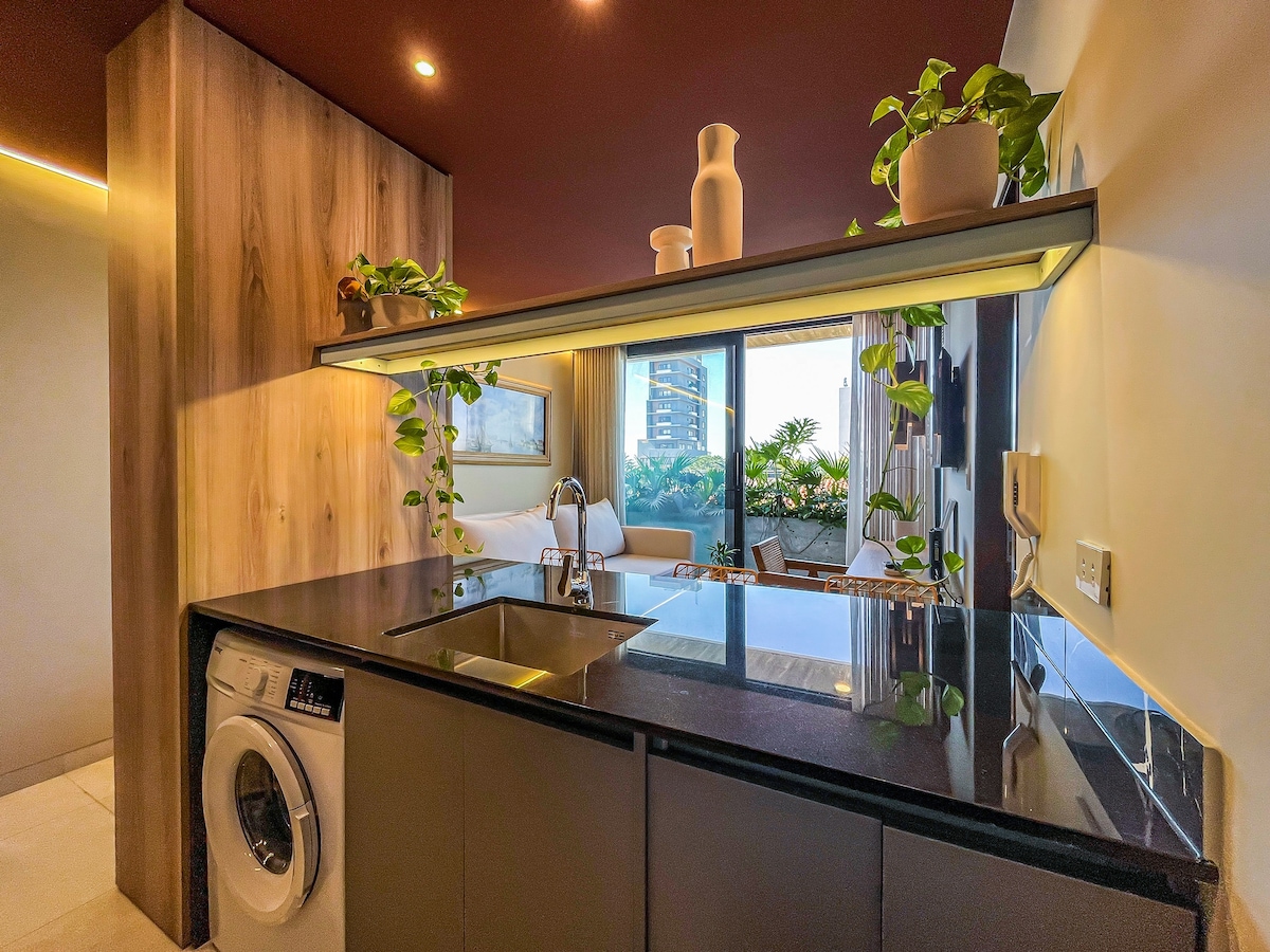 Descubre la elegancia en este acogedor departamento de 1 habitación con vistas de ensueño. Experimenta el lujo de un equipamiento extremo con una Smart Tv de 65" 4K HDR en sala y otra Tv 50" en dormitorio, potentes equipos de aire acondicionado, lavadora, y electrodomésticos necesarios, cama Queen Ultra Confort, cambiador y tocador, además de la domótica y Alexa para cumplir tus ordenes. Viví la síntesis de la modernidad como nunca antes, reserva YA!