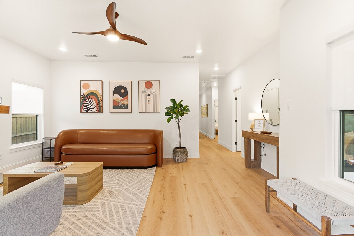 Experimenta el centro histórico de McKinney en este bungalow de 3 dormitorios que combina el encanto vintage con la vida contemporánea, ideal para parejas o familias. A solo una manzana de la plaza de la ciudad, cuenta con una amplia sala de estar con una cocina totalmente equipada y una mesa de comedor llena de luz natural. Las amplias ventanas dan a un acogedor patio trasero privado con asientos y parrilla de gas. Las comodidades incluyen wifi de alta velocidad, ropa de cama de felpa, aire acondicionado, máquina de hielo de guijarros y lavadora y secadora. ¡Reserva tu estancia ahora!