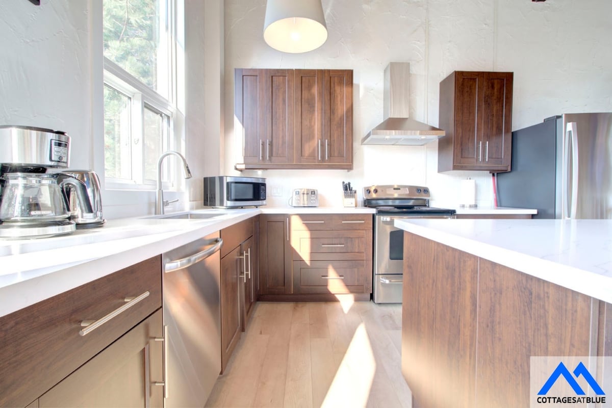 Welcome to Snowbridge chalet, our sunny, 4-season private retreat. Professionally designed and decorated, the chalet is the perfect getaway for families, only a 10 minute walk or 3 minute drive to all the ski & snowboarding activities and fun of Blue Mountain village. With room enough for 6 guests, our 2 bed, 2 bathroom ground level chalet backs onto Monterra golf course, providing lots of space for outdoor time and bbq's. Includes all the comforts of home for the perfect relaxing escape.