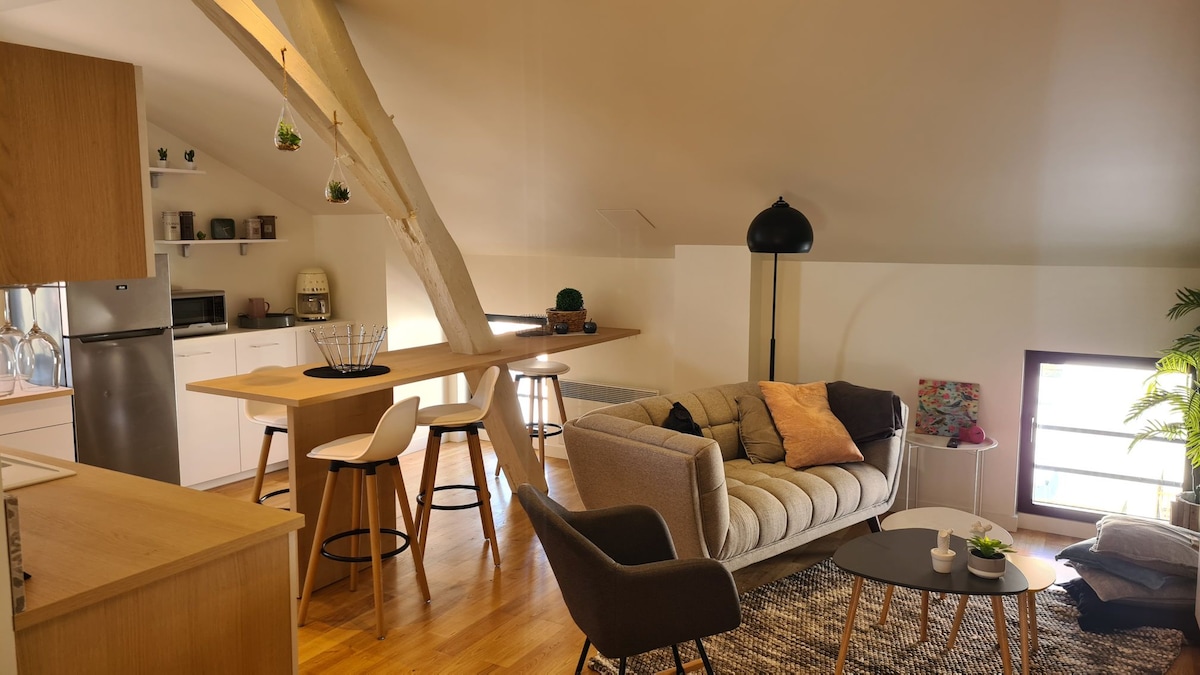 Gran estudio renovado equipado en el Corazón Histórico Disponible dentro de la vivienda: - Ropa de cama y toallas - Productos de bienvenida: té, café, magdalenas, gel de ducha - Wifi de fibra - Smart TV - Lavadora/secadora - Lavavajillas - Horno microondas con grill - Placa de inducción - Cafetera Senseo - Hervidor de agua - Frigorífico - Minivestidor Opcional: - Desayuno en el restaurante Chez Rosette 8 €/persona - Salida tardía 13:00/suplemento 10 € Llegada autónoma a partir de las 16:00 y salida antes de las 11:00