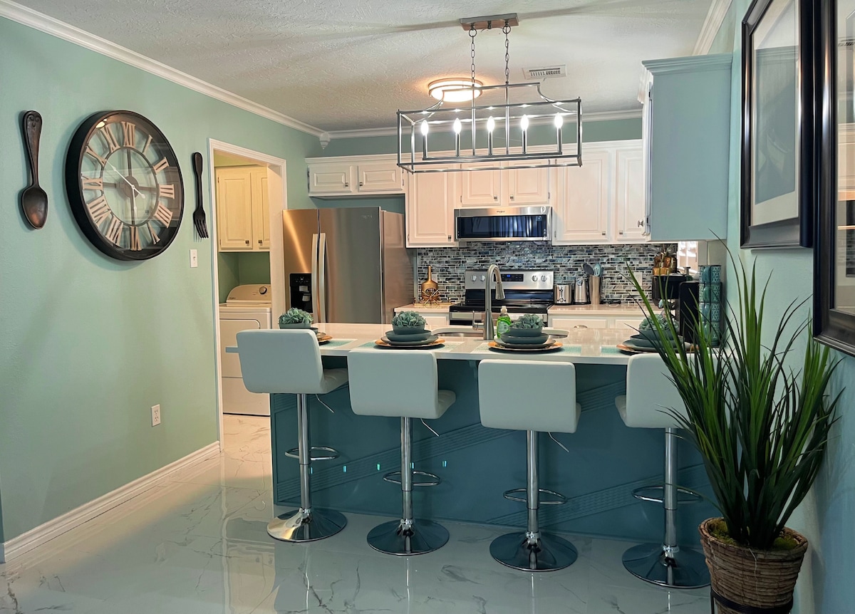 ¡Toda la familia puede relajarse y descansar en este hermoso hogar lejos de casa! Completamente renovado y recién decorado, desde lujosas toallas hasta lujosas sábanas, no te decepcionará. Disfruta de 3 amplios dormitorios, 2 baños y una cocina completa con todo lo necesario para cocinar una deliciosa comida. Acurrúcate en el acogedor sofá junto a la chimenea para ver una película en la Smart TV o desafía a los demás a un partido de ping pong en el garaje. También puedes disfrutar de un paseo por este tranquilo barrio.