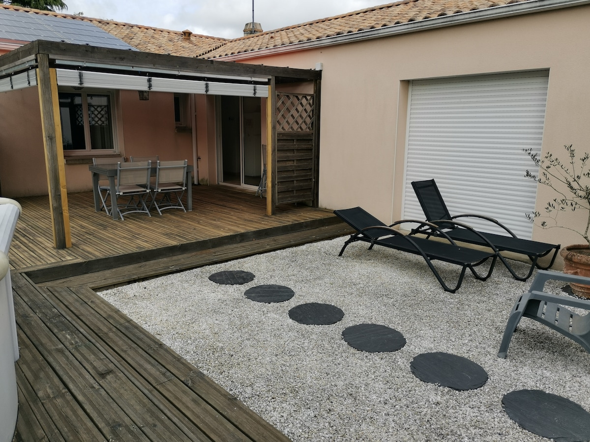 ¡Bienvenido a nuestro pequeño nido a 15 minutos de las playas! Hemos optado por acondicionar una suite independiente que forma parte de nuestra casa para darle la bienvenida y permitirle visitar nuestra hermosa región. En su alojamiento, todo está diseñado para que pueda sentirse como en casa (buena ropa de cama, cocina equipada, baño grande) tiendas a 800 metros. Después de un día de turismo, podrá disfrutar de un espacio exterior privado y relajarse en el jacuzzi. Hasta pronto