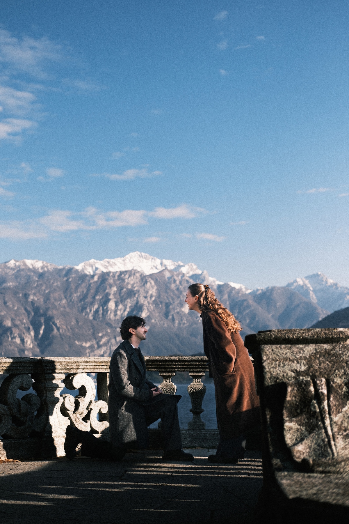Capturo propuestas de matrimonio románticas con el impresionante lago de Como como telón de fondo.