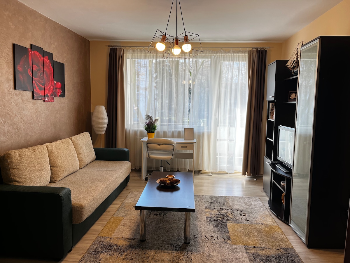 Apartamento completamente renovado con muebles y electrodomésticos nuevos. Está situado en una planta baja elevada en uno de los bulevares más conocidos de la ciudad. Las ventanas dan a una calle trasera soleada y tranquila. Está a 5 minutos a pie del centro de la ciudad y a 10 minutos de Platoul Cornesti, una zona de ocio, a 15 minutos del hospital. Está situado cerca de restaurantes, paradas de autobús, mercados y tiendas de comestibles. Es ideal para parejas o huéspedes solteros.