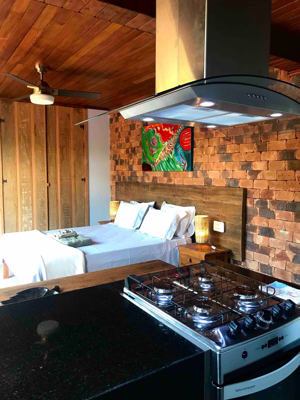 Tómate un descanso para relajarte en este paraíso. Ideal para parejas que quieren disfrutar y salir de la rutina con comodidad. Con todo el alojamiento para ti, maravilloso y acogedor chalet con hidromasaje. Cama Queen, cocina compuesta por Air Fryer, cocina de 4 hornillas, cafetera, licuadora, microondas, batidora y todos los utensilios domésticos básicos para su comodidad.