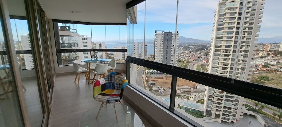 Departamento nuevo ubicado en barrio exclusivo de Con con, Costa de Montemar. El departamento está amoblado y full equipado con acceso a internet, piscina, gimnasio, arriendo de sauna, estacionamiento privado y cuenta con una vista panorámica espectacular. Existen supermercado y locales comerciales a menos de cinco minutos y se encuentra a 100 m de las dunas de con con, ideal para dos a tres personas, lo cual es perfecto para entretenerse y descansar.