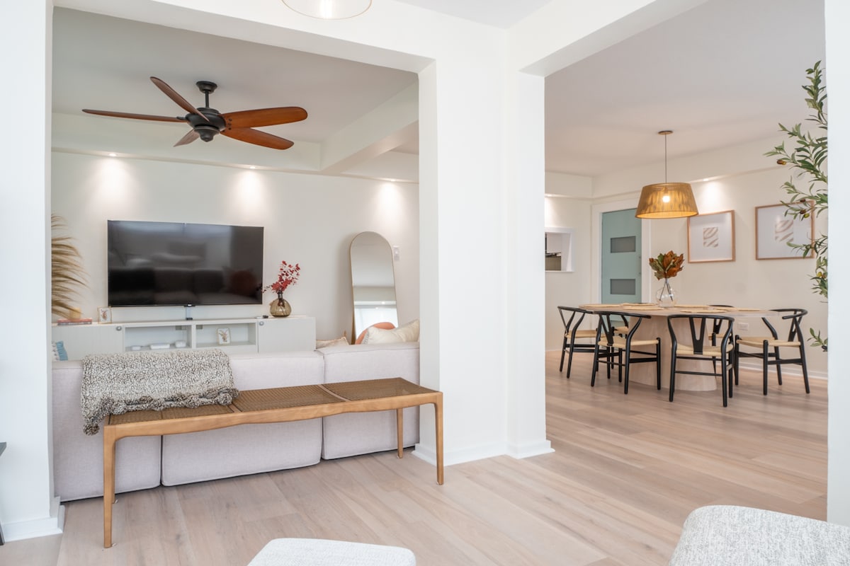 Acurrúcate en la cama elevada construida a medida para una noche de cine al entrar en esta casa recién renovada y llena de luz. Descubre todo lo que San Juan tiene para ofrecer justo al lado de tu casa. Si planeas pasar tu estadía en las áreas de Condado y Viejo San Juan, te recomendamos que no alquiles un auto, ya que el estacionamiento en la calle es extremadamente limitado y los estacionamientos son caros.