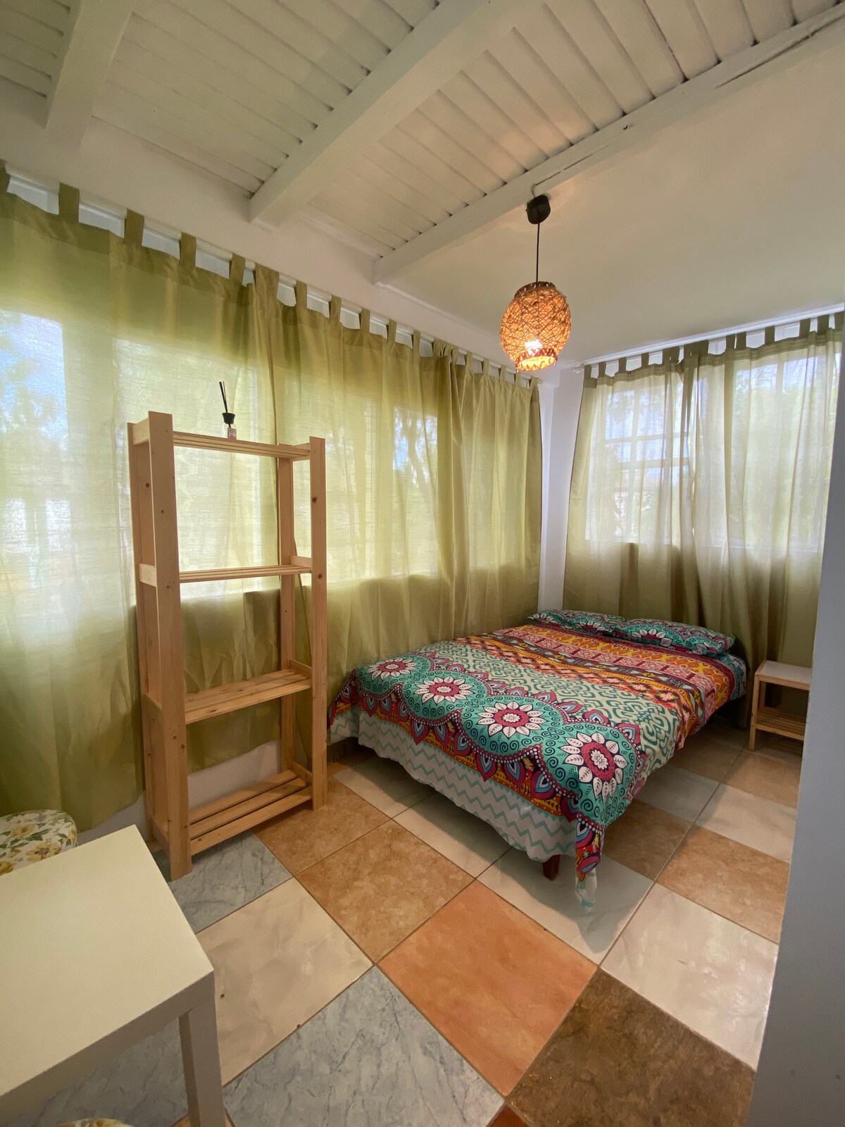 Double bed and single bed in a room with own bathroom. Garden/sea view. Chill spaces in the garden. 50m to the beach. Outdoor kitchen. Ping-pong table. Desk and chair for working. Friendly hosts. Good vibes. Cool paintings. What else? Send us a message and come see for yourself!