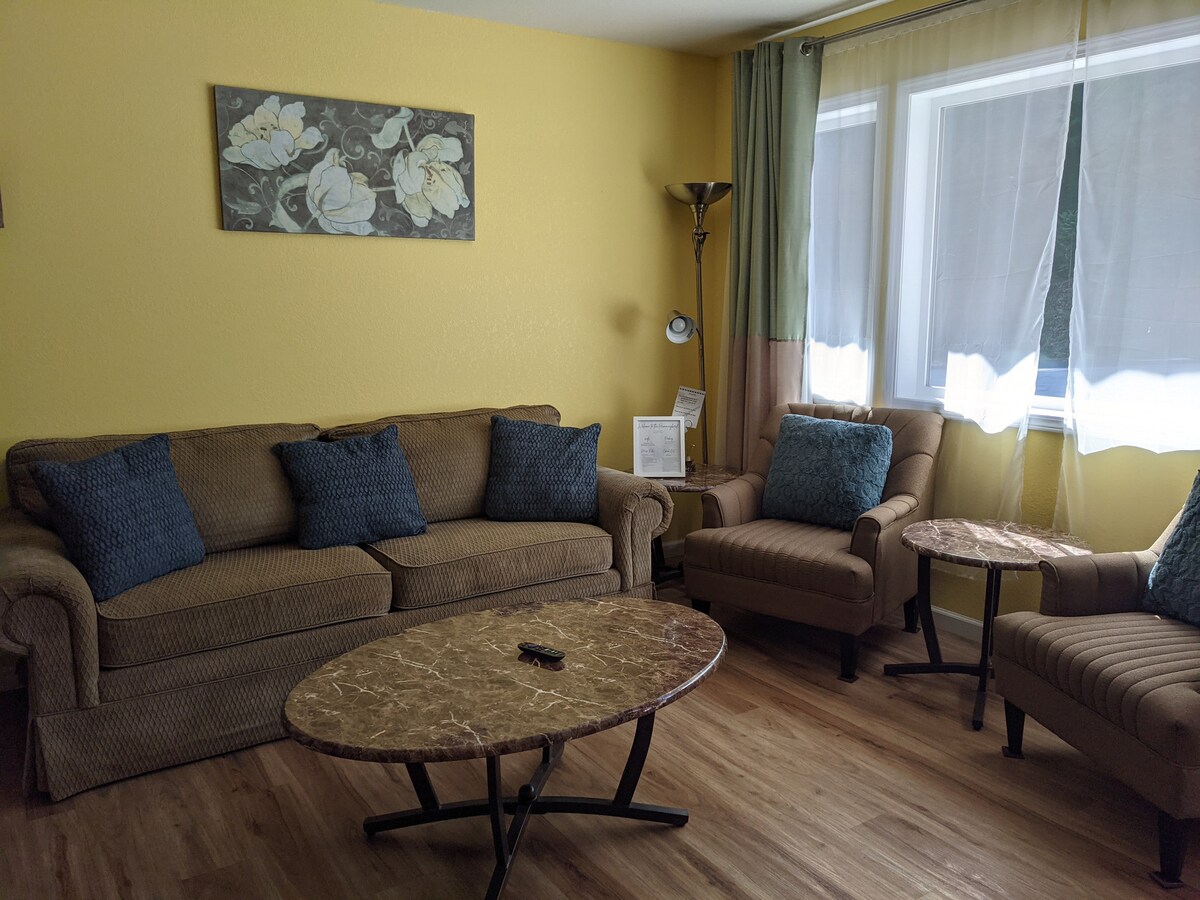 Apartamento de 1 dormitorio muy privado y encantador de 1905 en el barrio de Mingus Park. A poca distancia de restaurantes, cafeterías en el centro de Coos Bay. Cocina completa y lavandería. Wifi, TV con Netflix. Cama queen en el dormitorio privado. Impresionante sofá cómodo para 2 personas en la sala de estar. Cuna de viaje disponible para bebés o cuna disponible para niños mayores o para huéspedes adicionales. Se admiten mascotas con discusión previa y pequeña tarifa de limpieza.