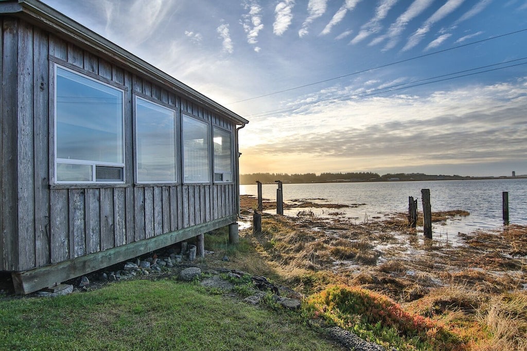 Enjoy an Oregon coast getaway in our bayfront cottage. 1 bdrm/2 bath, full kitchen, w/d, & upper & lower decks. This is right on the estuary w/ expansive views from both stories to watch egrets, herons, bald eagles and blacktail deer up close! Master ensuite w/ king-size bed. Near Charleston Marina, behind the boatyards, on the estuary. All the comforts of home w/ a gorgeous view! Many coastal activities & nature areas close-by.