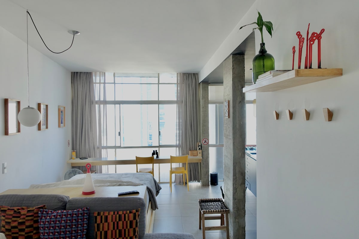 Estudio diseñado por la arquitecta Ketlyn Melero, planta abierta y moderna en el piso 28 del icónico Edificio Copan con vista panorámica, brindando el escenario ideal para que su estadía sea inolvidable. El Copan es uno de los edificios más importantes y emblemáticos de la ciudad de São Paulo. Es un símbolo de la arquitectura moderna brasileña, diseñado por el arquitecto Oscar Niemeyer.