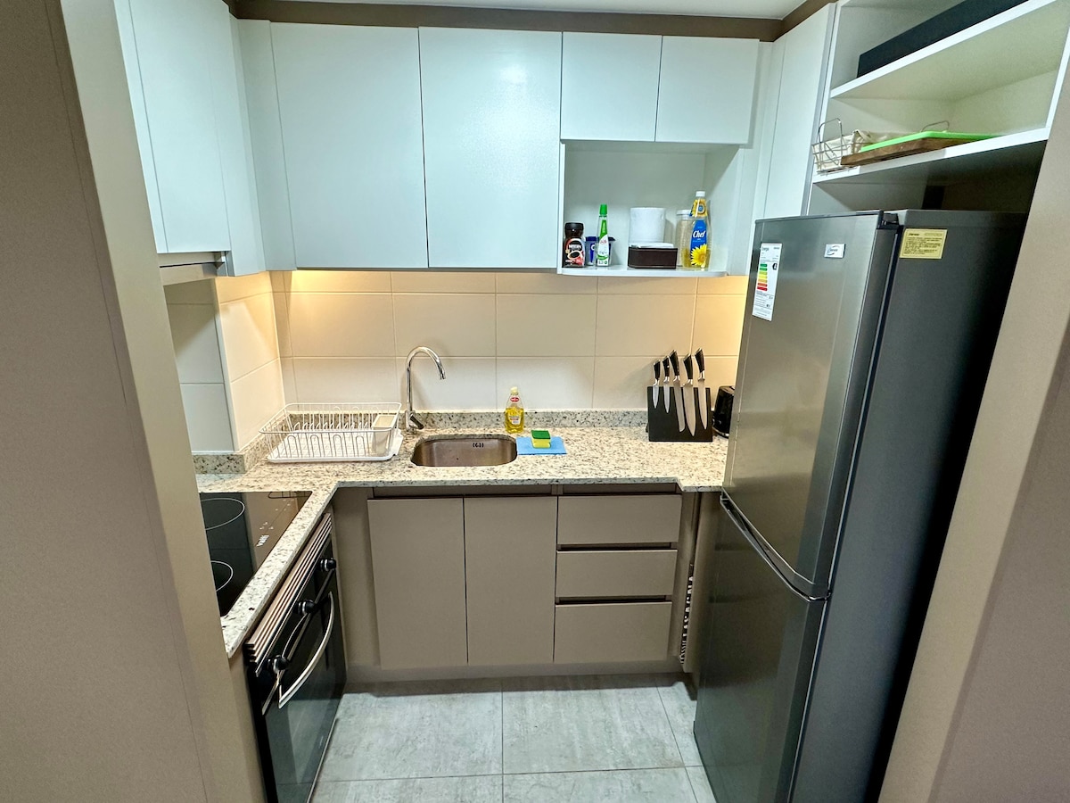 Disfruta de una excelente ubicación a una cuadra de la playa y a pasos del casino Enjoy. Cerca de restaurantes, cafeterías y bares ubicados en la costanera de La Serena. El condominio rodeado de áreas verdes, cuenta con piscina, quincho, estacionamiento, ascensor y conserjería 24 hrs. Completamente equipado, el departamento cuenta con 2 habitaciones, una con cama matrimonial y la otra adecuada como espacio de trabajo con escritorio. Sábanas y toallas incluidas. Smart TV y WiFi.