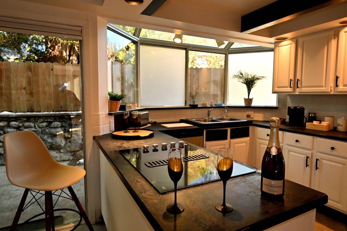 Pay a visit to the local market, then serve a homemade feast under the modern take on a chandelier at this light-filled family home. Soak up the sun through original lead windows, then indulge in a soothing bubble bath by the light of the moon. The whole main floor and upstairs of the house is yours to use when you book our home. You have full use of the patio with a barbecue, full high end kitchen with the best appliances including Viking stove, A Beautiful dining area and living room with gas fireplace and smart TV and a den on the main floor with another Smart TV . Upstairs is the bedroom and 2 bathrooms. Someone who’s offsite will be available as needed The house sits on a tree-lined street in a quiet, family neighbourhood one block away from public transportation and a short walk from a food market, Starbucks coffee, a local wine shop, and a delicious ice cream parlour. Parking if you have a car is right in front of the house on our quiet street. If you need public transit, we are 1 short block walk to public transportation and a short walk to a food market , Starbucks coffee, Local wine shop and a delicious ice cream shop.