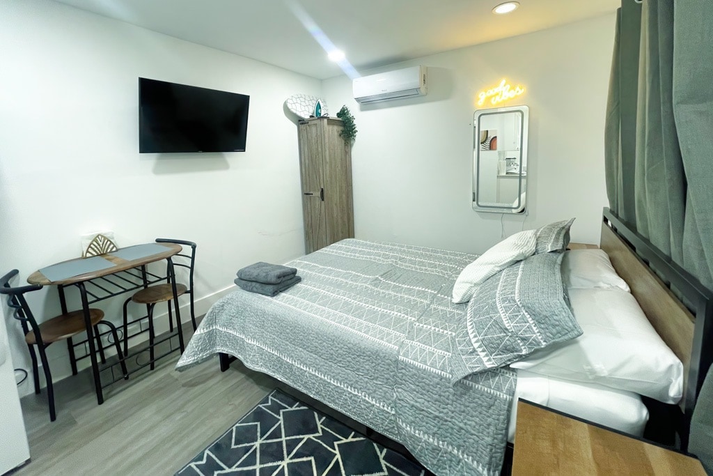 Brand-new private studio with free parking just minutes from Miami Airport, Coral Gables, and South Beach. Enjoy premium mattresses and a smart TV with Netflix. We maintain exceptional cleanliness for a comfortable, worry-free stay. No animals of any kind are allowed, including service animals, due to an Airbnb-approved health exemption. We cannot store luggage. Early check-in at 1 p.m. is available for a $15 fee, with advance notice. Thanks for choosing our place!