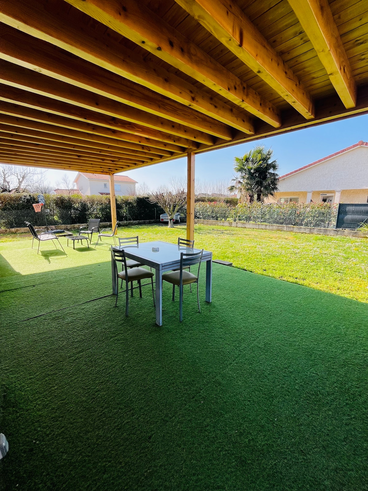 Logement de 90 m² de plain pied sur la commune de Corbas Paisible, idéal pour recevoir familles, groupe d’amis ou les professionnels. Composé de 2 chambres (2 x 2 lits simples pouvant se jumeler) WC et salle de douche séparée Entièrement rénové et décoré avec goût Une belle pièce de vie composée d’une grande cuisine ouverte, fonctionnelle et équipée. Nous fournissons : - Les draps - Les serviettes, - Thé, café, sucre pour petit déjeuner